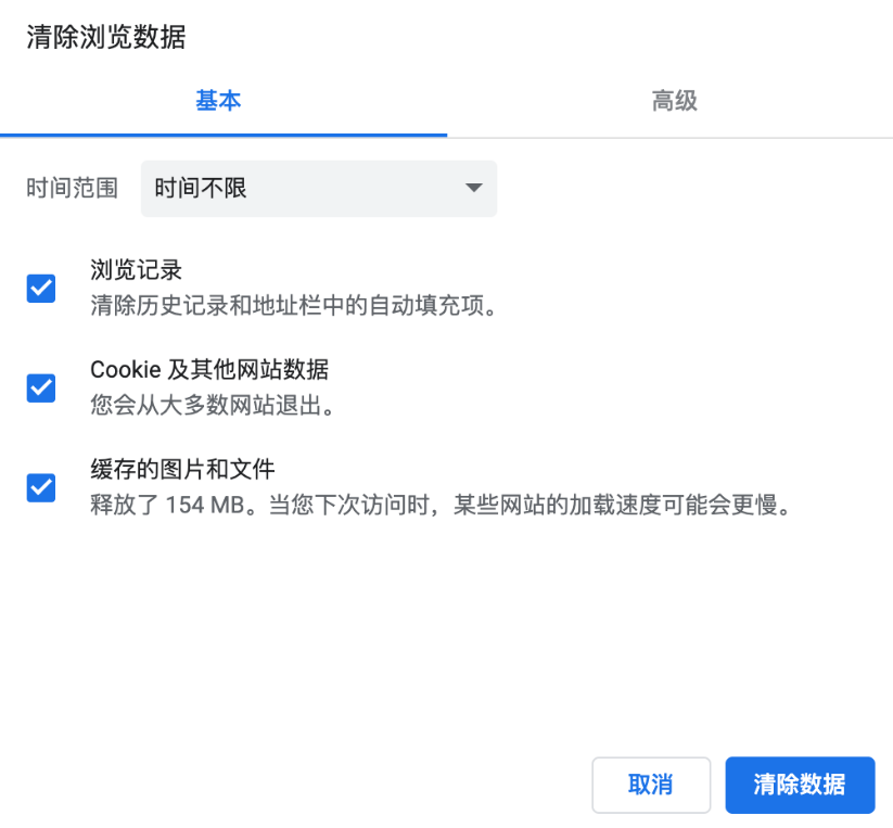 清除浏览器缓存的操作说明如下,以谷歌浏览器和IE浏览器为例。