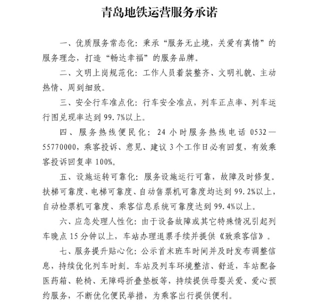 青岛地铁运营有限公司之服务质量承诺_青岛政务网