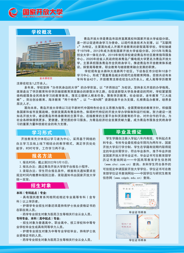 2022年春季开放教育招生简章_青岛政务网