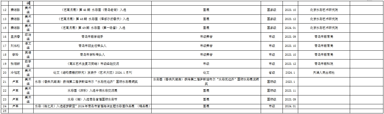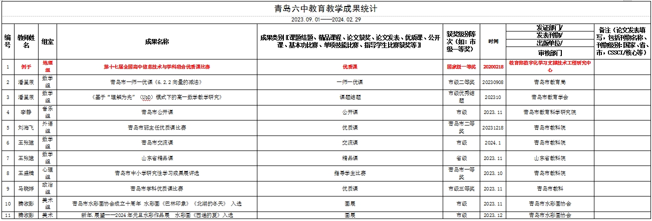 青岛六中教育教学成果统计(2023.09.01——2024.02.29)