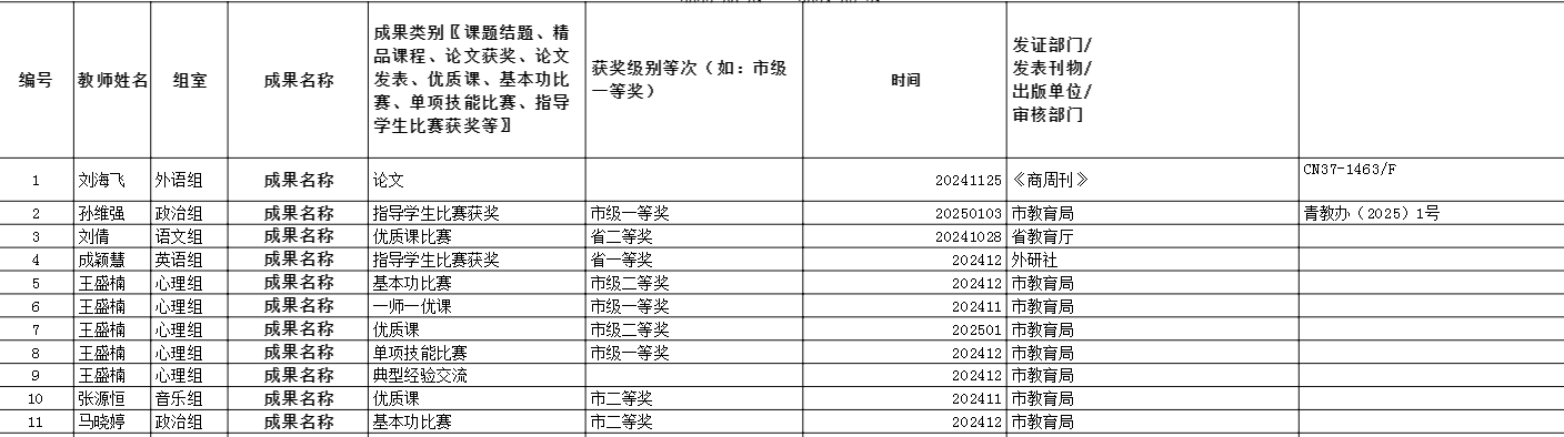 山东省青岛第六中学2025年教学成果