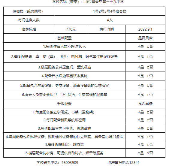 2022学年度收费信息公示_青岛政务网