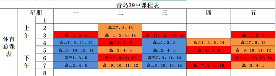 高中三个年级,每周两节体育课,利用选项教学的形式进行教学。选项的项目有:田径、篮球、排球、足球、羽毛球。