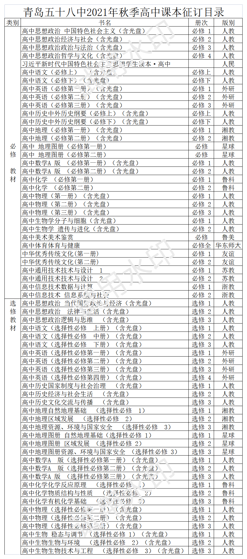 2021年秋季教材教辅征订目录_青岛政务网