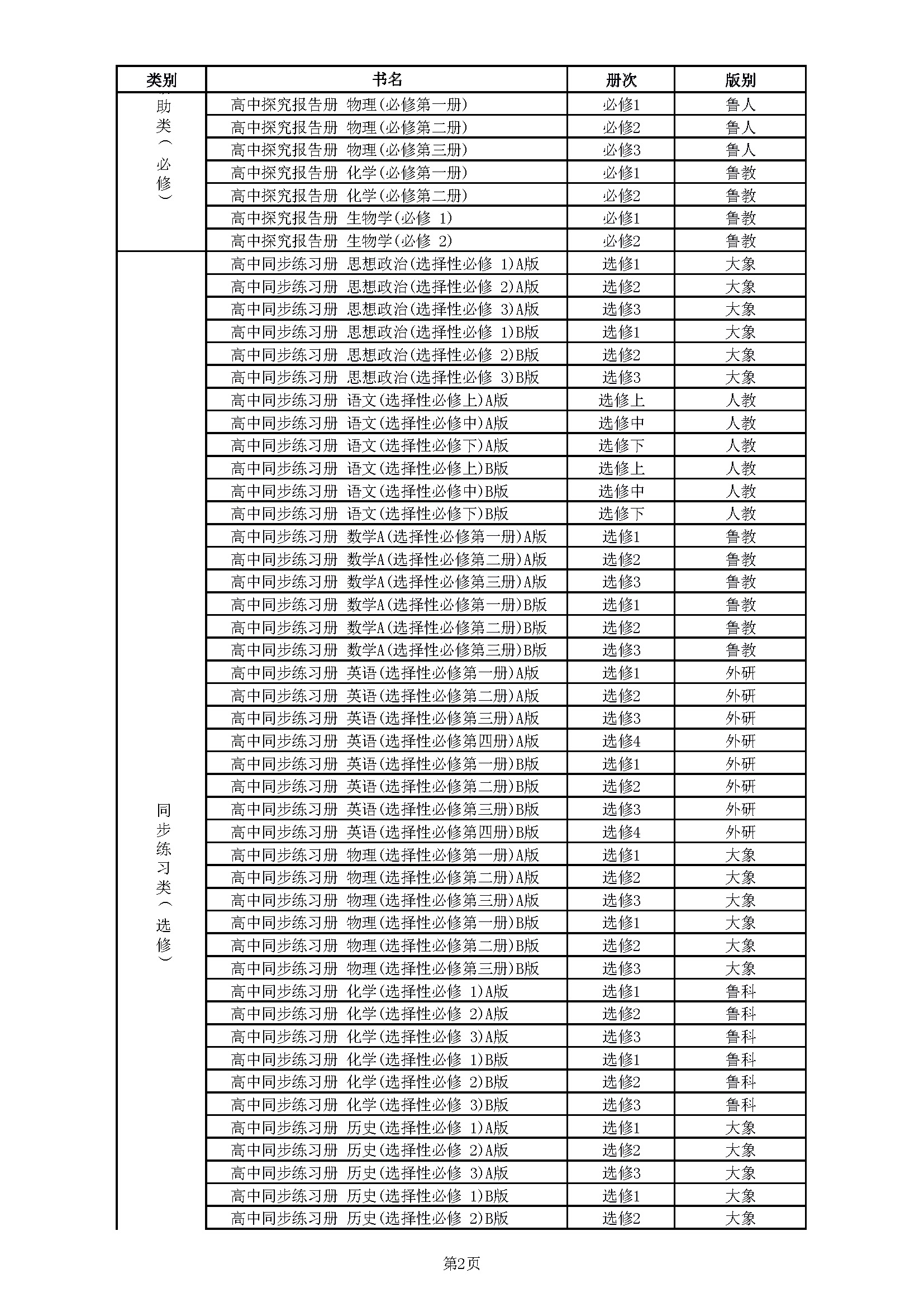 青岛五十八中2025年秋季高中教辅类选用版本_青岛政务网