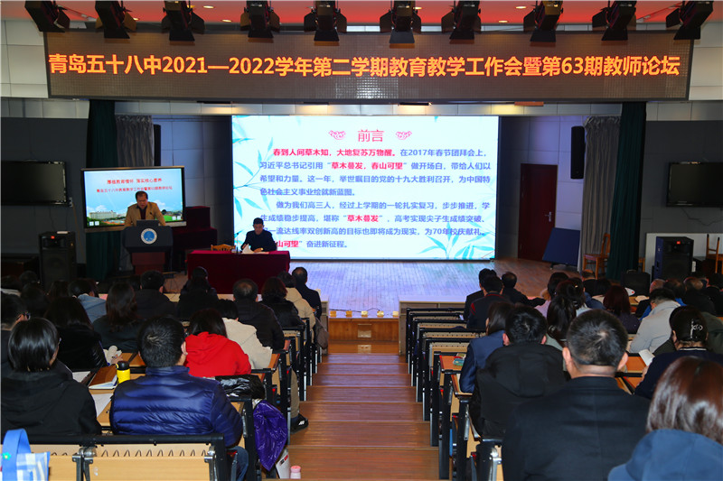 2022年3月3日,2021—2022学年第二学期教育教学工作会暨第63期教师论坛在报告厅隆重举行。本次会议的主题是“厚植教育情怀 落实核心素养”。会议由纪炜副校长主持,全体教职工参会。在第63期教师论坛上,有四位一线教师代表依次发言,他们视野开阔,格局宏大,为大家带来了精彩纷呈的精神盛宴。