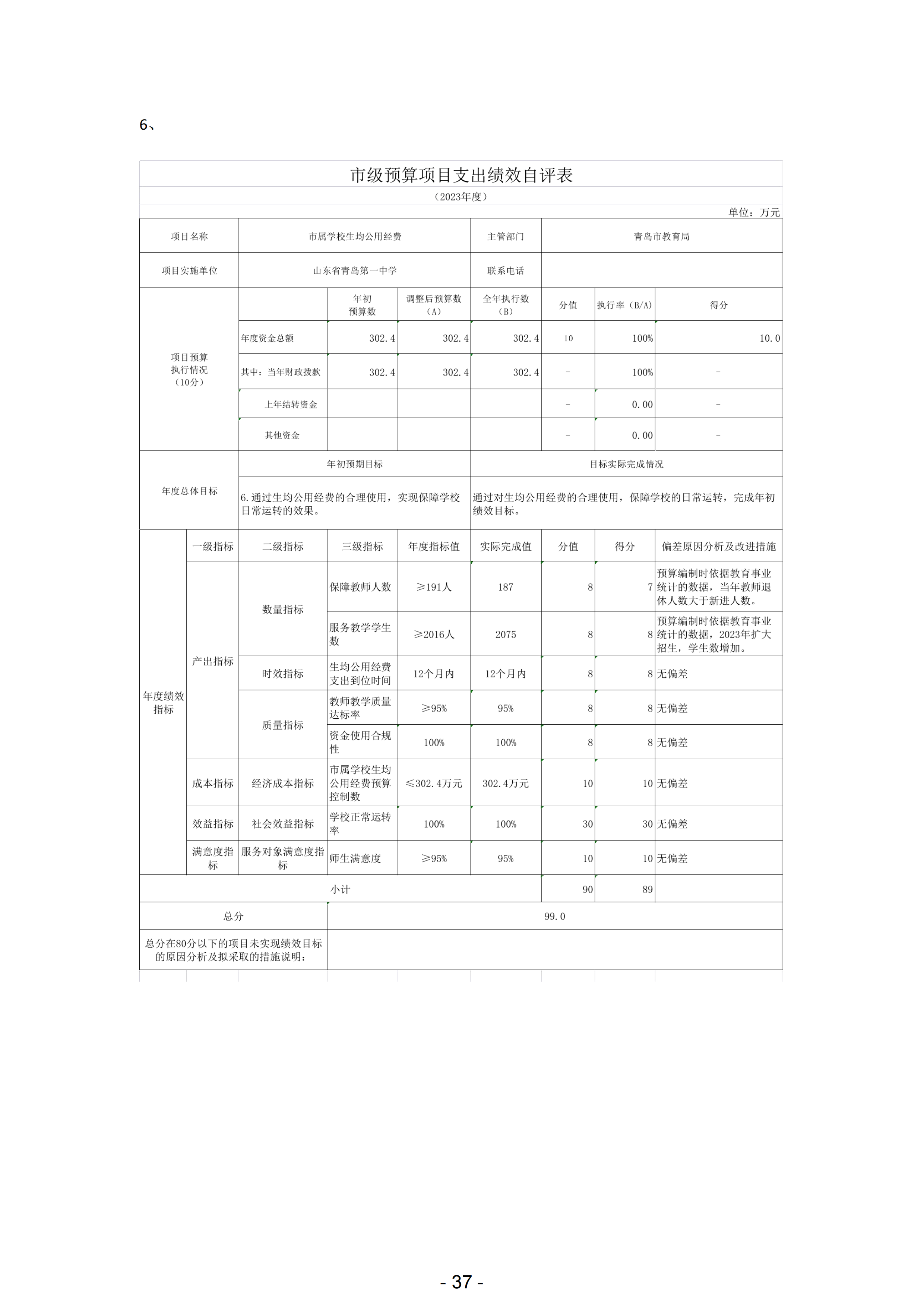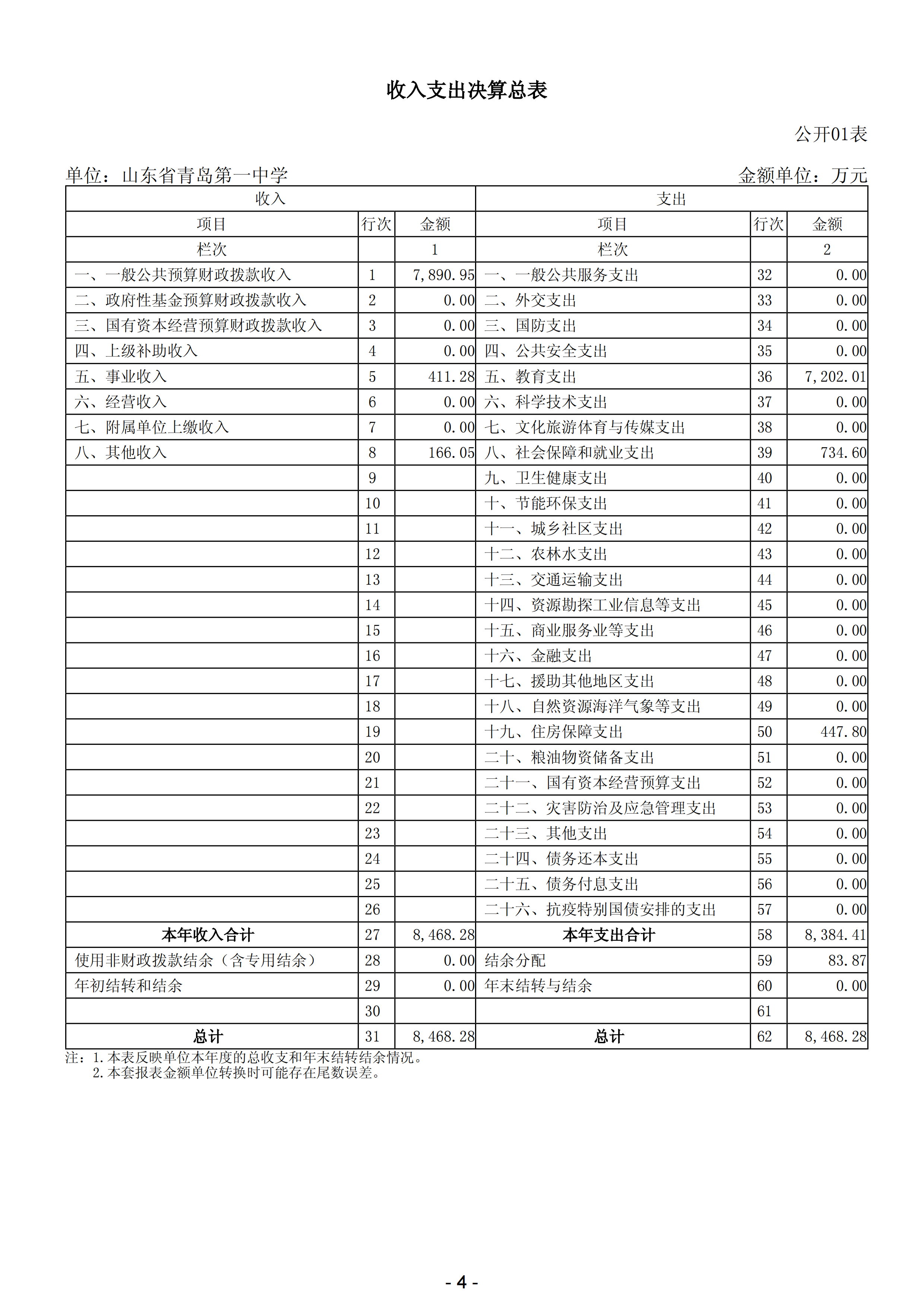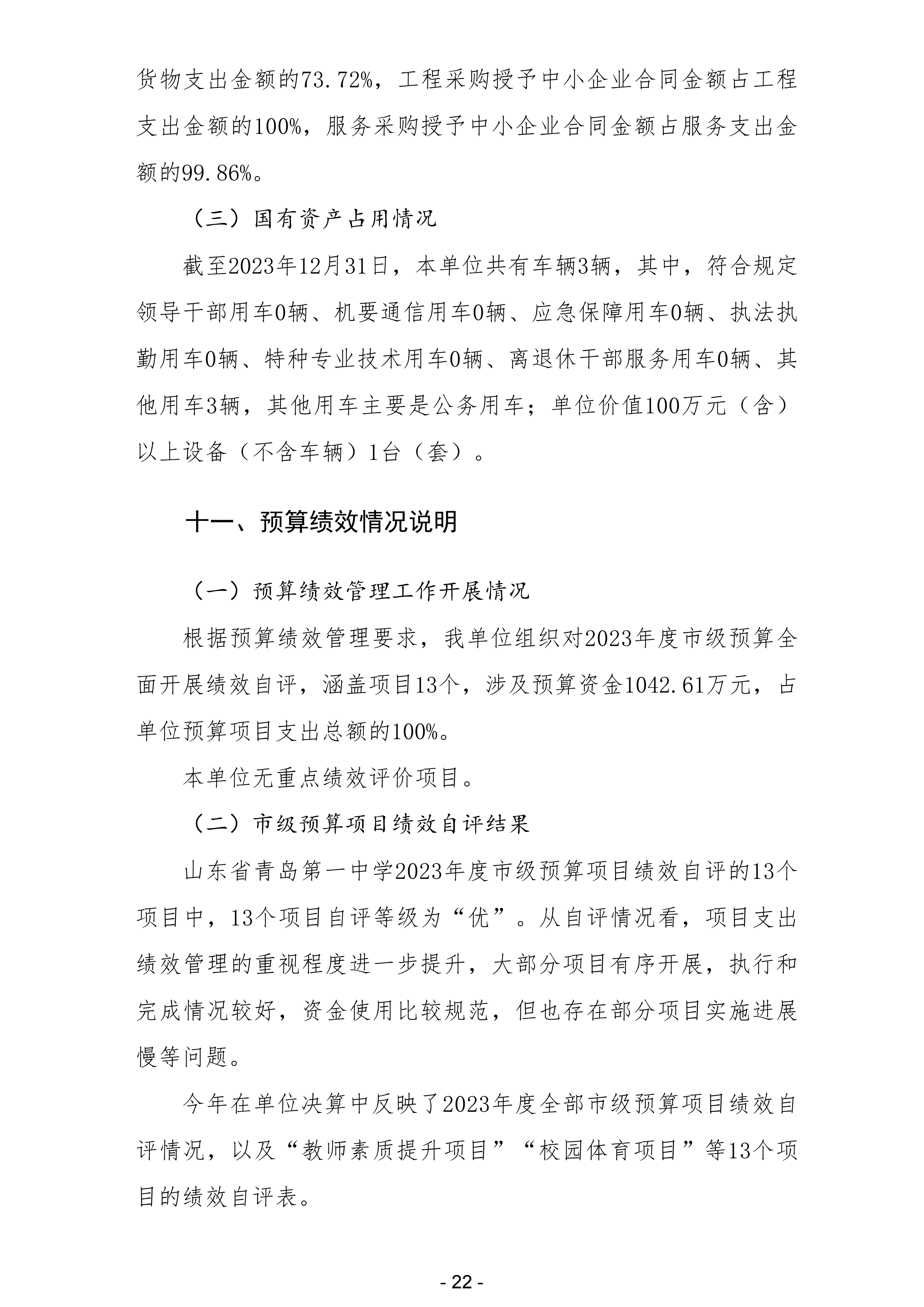 2023年山东省青岛第一中学单位决算_青岛政务网