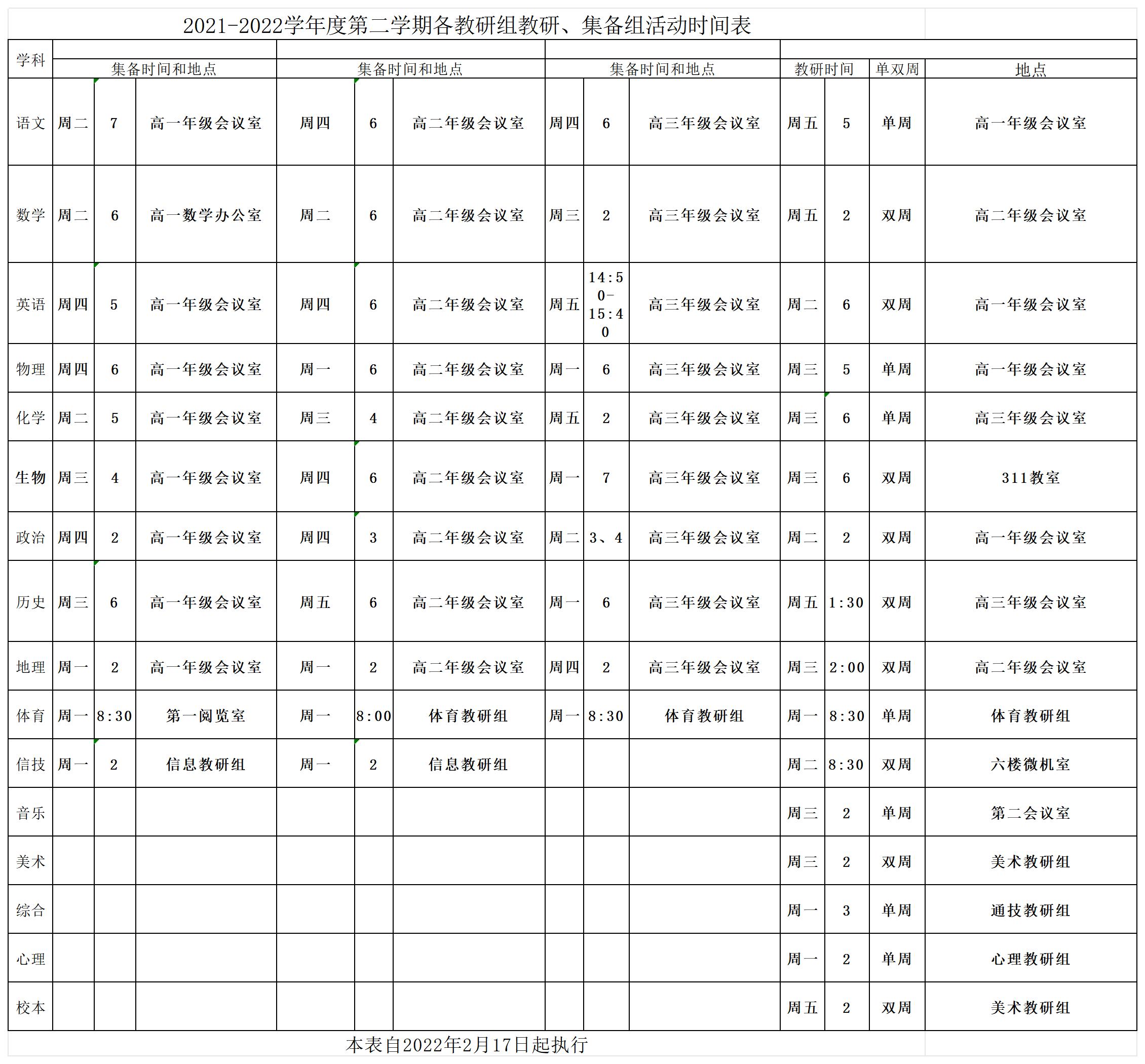 青岛一中2021-2022学年度第二学期教研集备时间_青岛政务网