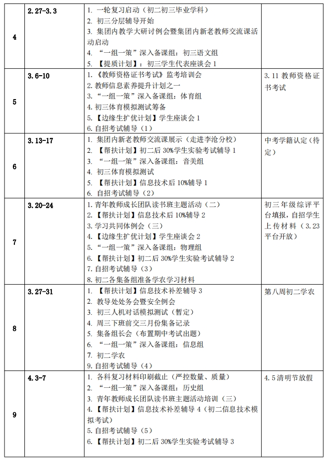 青岛实验初中2022-2023学年度第二学期教学研究活动安排表