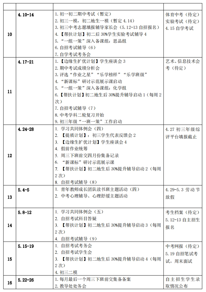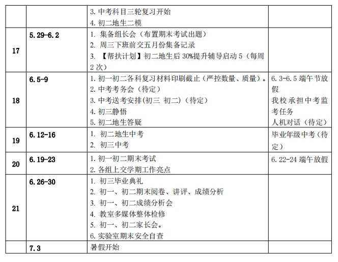 青岛实验初中2022-2023学年度第二学期教学研究活动安排表_青岛政务网