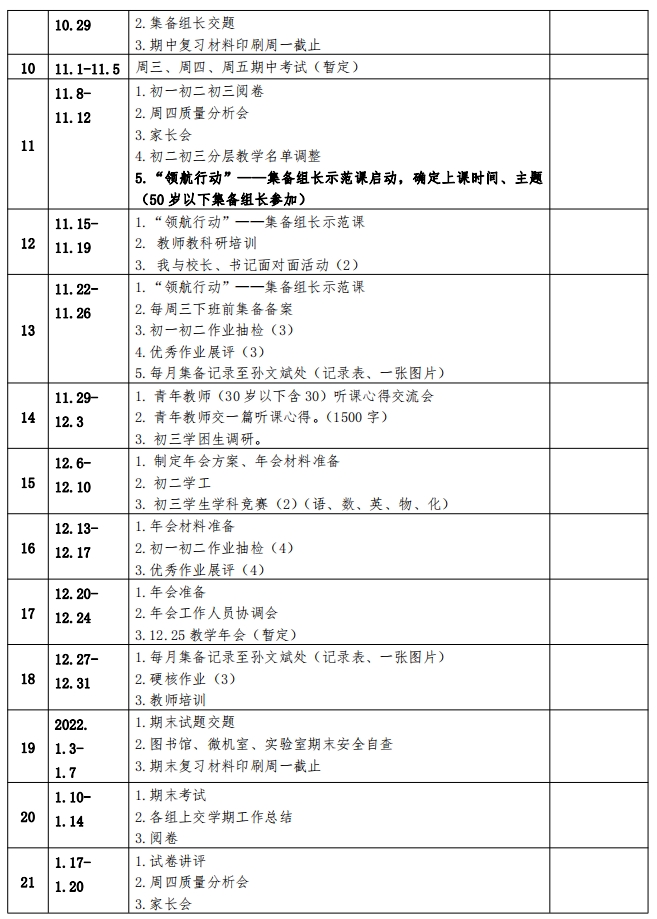 青岛实验初中2021-2022学年度第一学期教学研究活动安排表_青岛政务网