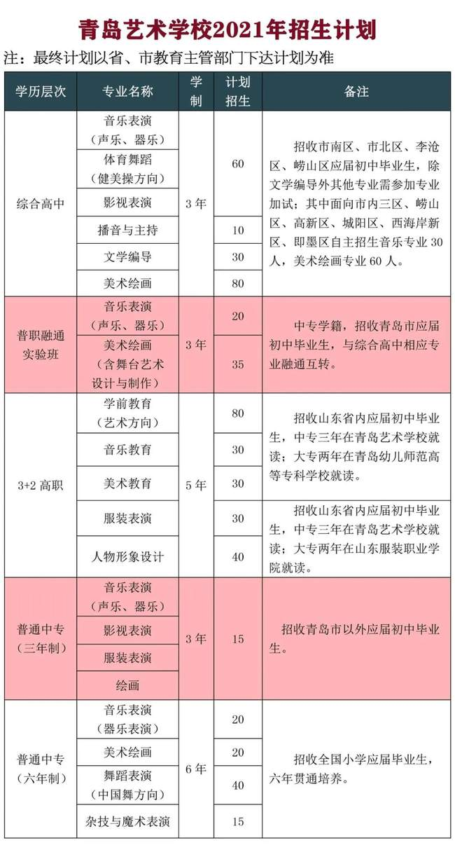 面向山东省应届初中毕业生招收学前教育(艺术方向)、美术教育、音乐教育、服装表演、人物形象设计专业学生。