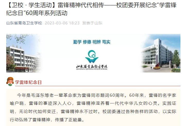 今年是毛泽东等老一辈革命家为雷锋同志题词60周年。60年来,雷锋的名字家喻户晓,雷锋的事迹深入人心,雷锋精神滋养着一代代中华儿女的心灵。实践证明,无论时代如何变迁,雷锋精神永不过时。校团委通过各种各样的活动,以实际行动弘扬了雷锋精神,传播了正能量。