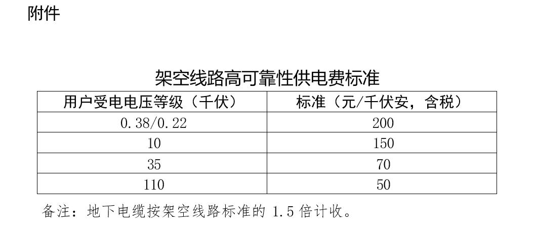 为节约电力建设投入,合理配置电力资源,根据国家发展改 革委《关于停止收取供配电贴费有关问题的补充通知》(发改价格 〔2003〕2279 号)、《关于调整供电贴费标准等问题的通知》(计 价格〔2000〕744 号)等文件规定,对申请新装及增加用电容量 的两回及以上多回路供电,或增加供电回路达到两路及以上多回 路供电(含备用电源、保安电源),且各供电回路在高压或低压受 电侧有电气联络的电力用户(不含电源用户的并网发电回路),除 供电容量最大一条回路外,其余供电回路按照可接带的全部容量之和收取高可靠性供电费。具体标准详见附表。