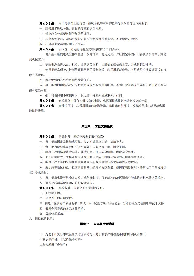 电气装置安装工程盘、柜及二次回路结线施工及验收规范