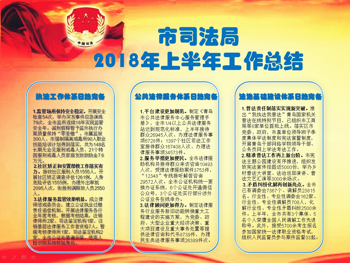 市司法局2018年上半年工作总结(图解版)_青岛政务网