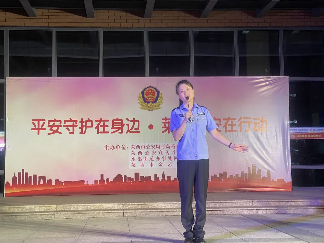 为提高广大群众的安全防范意识,9月16日开始,莱西公安文艺宣传小分队走进社区及企业开展“平安守护在身边,莱西公安在行动”主题安全宣传活动,现场运用形式多样、寓教于乐的文艺节目表演形式,向群众宣防盗、防骗、防毒、防事故等安全防范知识,提高群众自我防范意识和防范能力,不断提升群众安全感和满意度。同时,组织民辅警为群众解答各类问题咨询,征求群众意见建议。