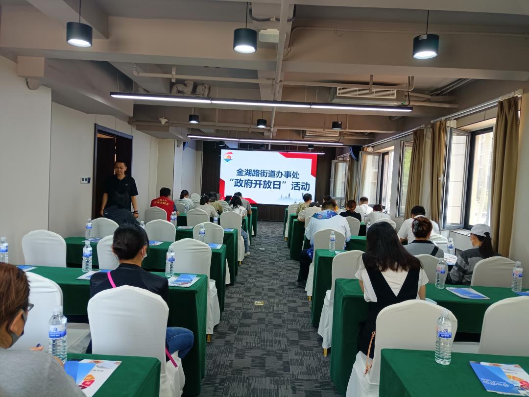 为进一步深入贯彻“深化作风能力 优化营商环境”专项行动部署要求,搭建政府与企业群众之间的沟通桥梁,近日,金湖路街道开展了“金企会客厅企业政策培训会”为主题的政府开放日活动。由街道公共服务中心、党政办牵头,聚焦优化营商环境,宣传解读惠企利民政策措施、为企管理服务等方面,在街道金企会客厅通过宣讲活动、现场解答群众咨询问题、发放政务服务办事指南等形式,向广大产业园楼宇代表、辖区内各行业企业代表、居民代表宣传税收、金融、人力资源政策等相关法律政策,让政务服务更透明、更亲民。