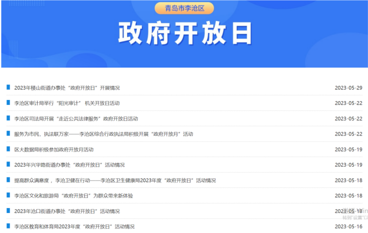 政府积极引导各主办单位开展多角度解读工作,充分保障群众对政策的知情权和对“政府开放活动”的参与度。以优化营商环境、推动社会发展、推进政务公开、落实便民政策等为重点,向企业、群众普及政务公开知识,深入解读政务公开影响企业、群众权利义务的行政行为和服务事项。突出“互联网+”优势,设立“李沧区政府开放日信息公开专栏”,围绕与群众关系密切的政府开放活动,立足基层政府直接联系服务群众的实际,集中展示全区各单位举办的开放日活动相关信息,对“政府开放日”活动进一步细致展示和说明,让群众看得懂、用得上。充分发挥政务新媒体矩阵的影响力,制作“政府开放月”图文解读,联合56个政务新媒体账号共频发布,持续扩大影响力和知晓度。