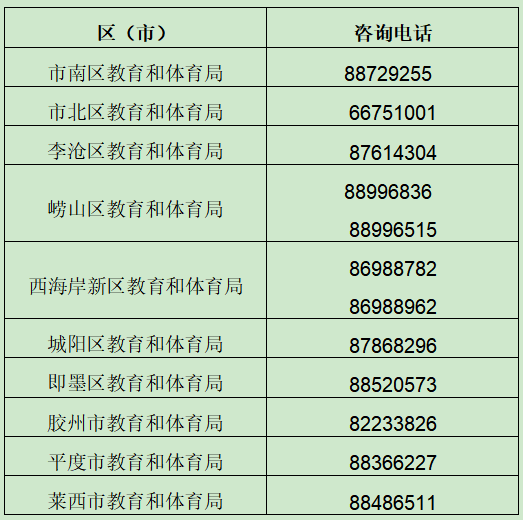 3.各区(市)义务教育招生入学咨询电话是什么?