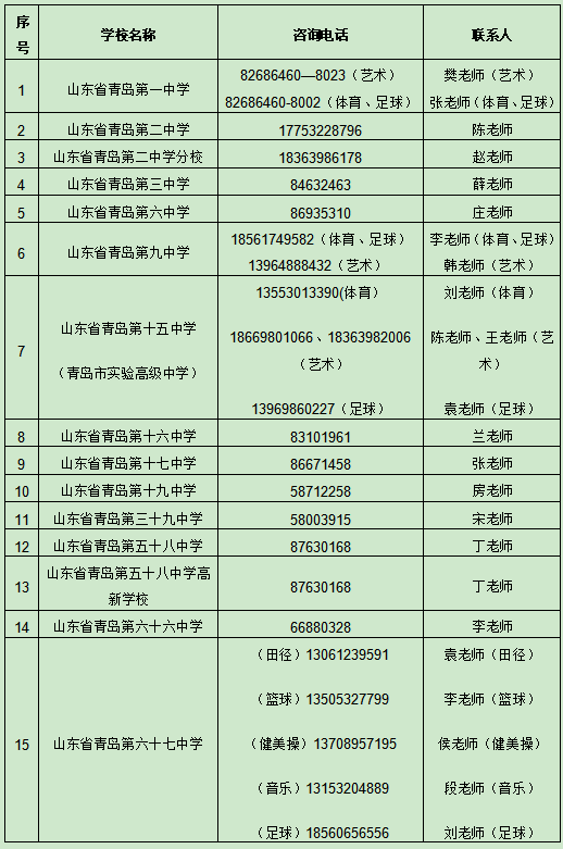 2024年网上十大正规赌网址教育局直属学校体育艺术特长生招生咨询联系方式如下:
