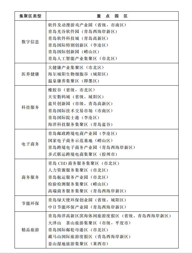 4.多点支撑。依托蓝谷、董家口、姜山、南村等功能性战略支点,重点发展生产性服务业;市南西部片区、市北邮轮母港区、李沧楼山后片区、城阳流亭机场片区等城市有机更新区域,围绕增功能、增活力及创造高品质城市新空间,积极发展商务服务、科技服务、文化创意、现代商贸等业态。