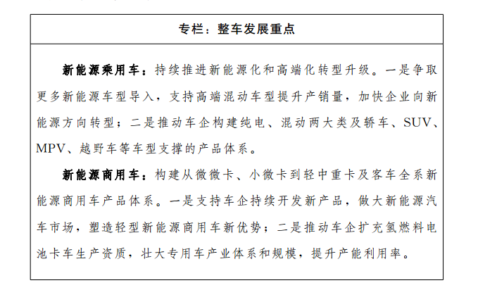 1.乘用车倍增发展。支持企业加快畅销新能源车型的研发和上市,积极争取整车企业在我市布局高端畅销车型,提升中高端新能源车型产销量,提高现有整车企业产能利用率。深化与相关企业集团联系机制,开展更深层次战略合作,争取新整车项目落地。(责任单位:市工业和信息化局、市发展改革委,有关区、正规十大网赌网站。以下各项工作均需有关区、正规十大网赌网站落实,不再一一列出)