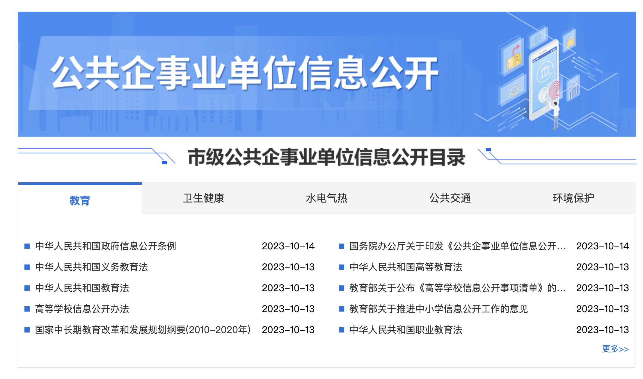 四是深入推进公共企事业单位信息公开。组织梳理全市教育、卫生、交通、环保、供水、供电、供气、供热等领域共828家企事业单位名录,升级公共企事业单位信息公开平台,通过对汇聚展示页面进行规范化标准化统一设置,让群众可以按领域、地域快速查找和获取所需信息,进一步方便群众办事。