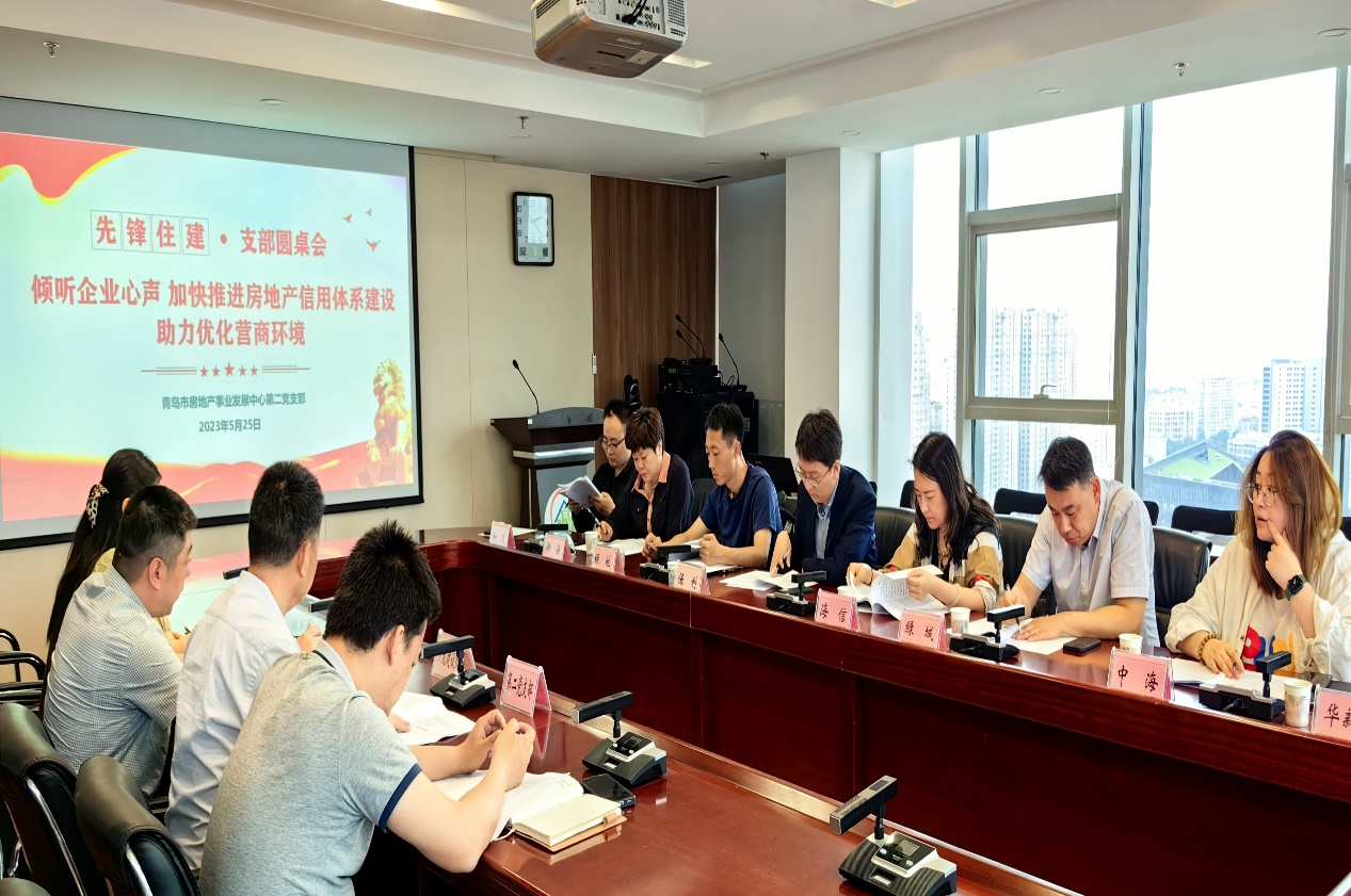 为深入学习贯彻习近平新时代中国特色社会主义思想主题教育,持续推进党建与业务深度融合,提升党建工作质量。5月25日,为给即将出台的《山东省房地产开发企业信用信息管理暂行办法》更加准确、全面的建议意见,同时也为帮助开发企业搞好企业信用建设,提升企业竞争力和品牌知名度,市房地产事业发展中心第二党支部邀请保利、海信、绿地、绿城等8家房地产开发企业,在市房地产事业发展中心1821会议室组织召开了“先锋住建·支部圆桌会”。