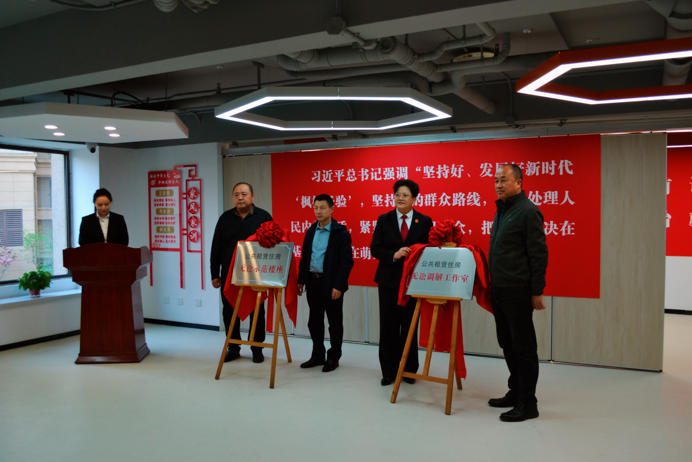为进一步推动公租房诉源治理工作,促进矛盾纠纷的源头治理和就地化解,2025年4月16日,在网上十大正规赌网址住房保障中心和市北区人民法院指导下,我市首批公租房“无讼社区”“无讼示范楼座”在市北区海尔玫瑰兰亭项目和鑫欣家园项目正式挂牌成立。网上十大正规赌网址住房保障中心、市北区人民法院、市北区房产管理服务中心及相关律师、人民调解员参加揭牌仪式。