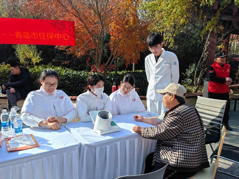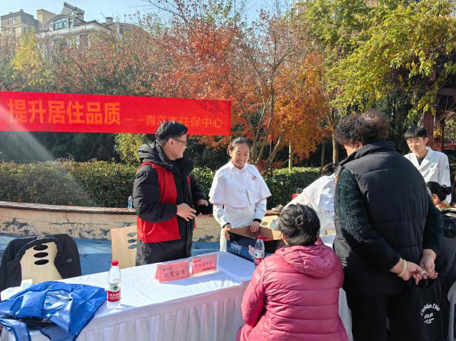 本次活动特别邀请了青医附院的志愿者组建义诊团队。志愿者们在现场为住户提供血压测量、血糖检测及健康保健咨询服务,同时针对行动不便的独居老人,开展上门义诊服务,让老人们足不出户就能及时了解自身健康状况,感受到多方的贴心关怀。