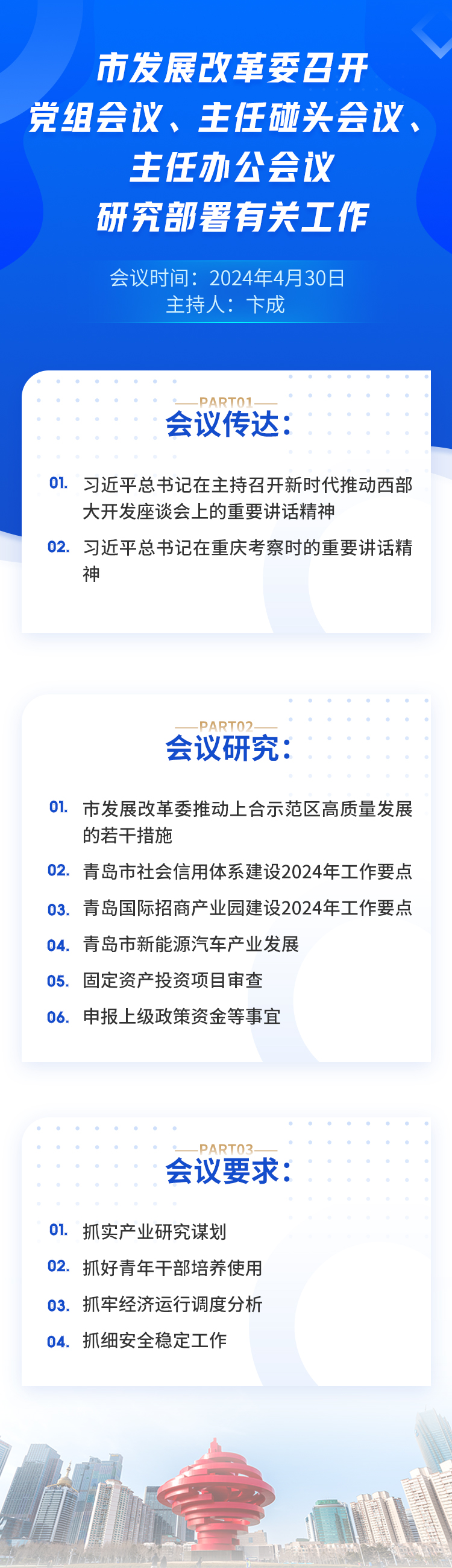 一图读懂|市发展改革委召开党组会议、主任碰头会议、主任办公会议,研究部署近期工作_青岛政务网