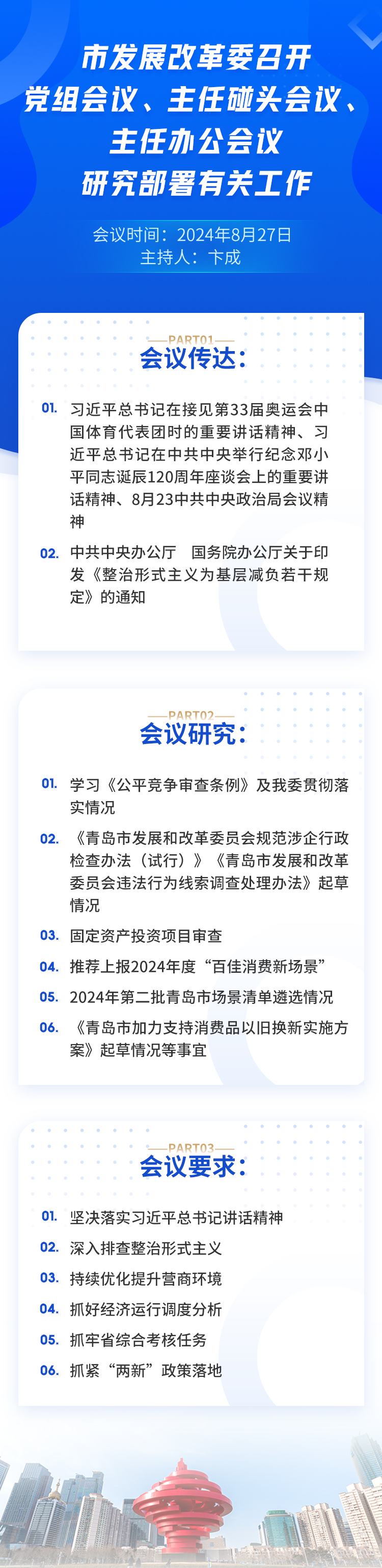 一图读懂|市发展改革委召开党组会议、主任碰头会议、主任办公会议,研究部署有关工作_青岛政务网