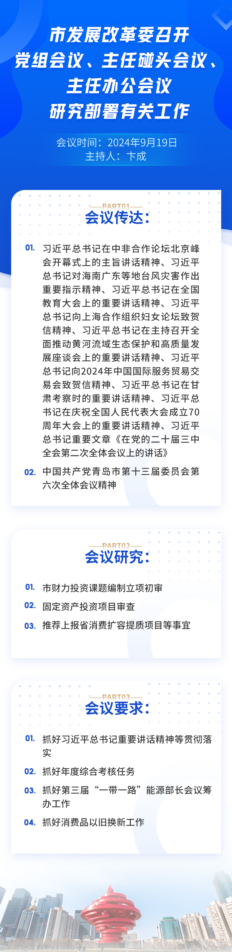 一图读懂|市发展改革委召开党组会议、主任碰头会议、主任办公会议,研究部署有关工作_青岛政务网