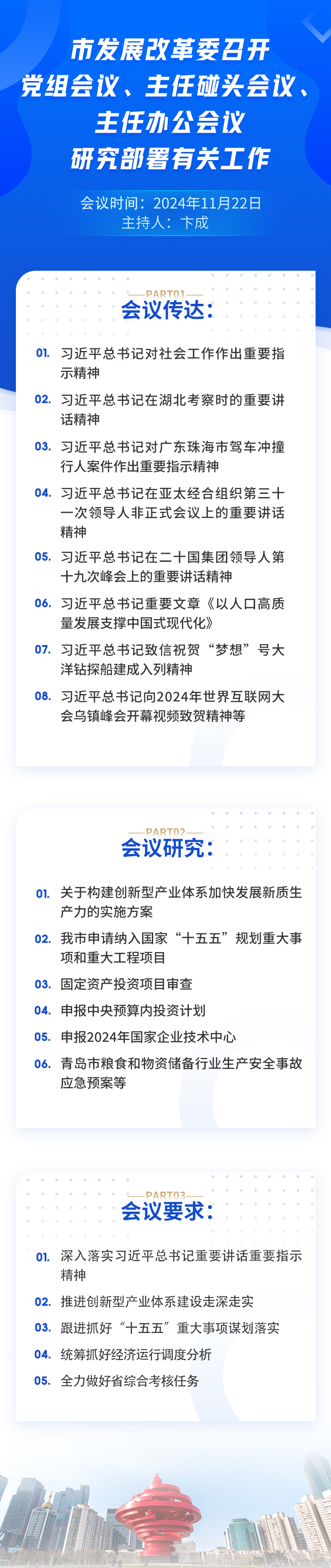 一图读懂|市发展改革委召开党组会议、主任碰头会议、主任办公会议,研究部署有关工作_青岛政务网