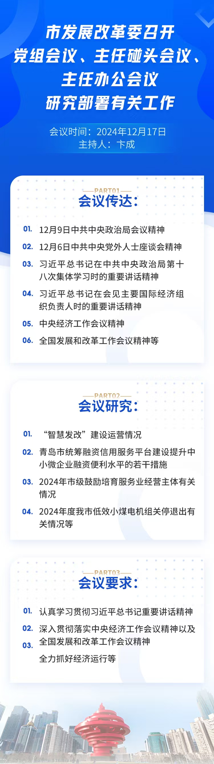 一图读懂|市发展改革委召开党组会议、主任碰头会议、主任办公会议,研究部署有关工作_青岛政务网
