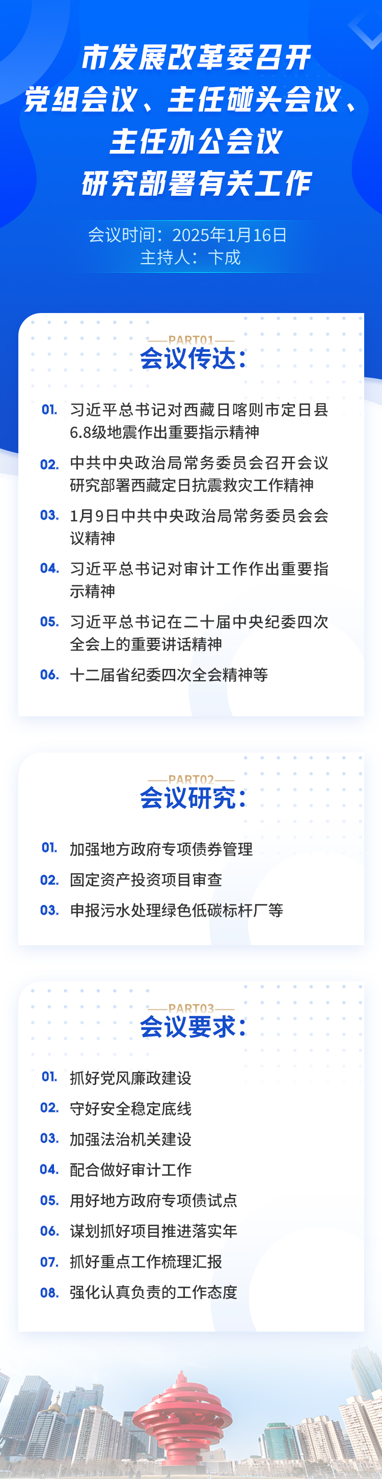 一图读懂|市发展改革委召开党组会议、主任碰头会议、主任办公会议,研究部署有关工作