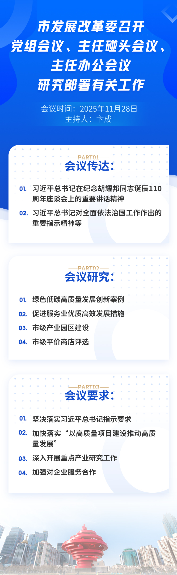 一图读懂|市发展改革委召开党组会议、主任碰头会议、主任办公会议,研究部署有关工作