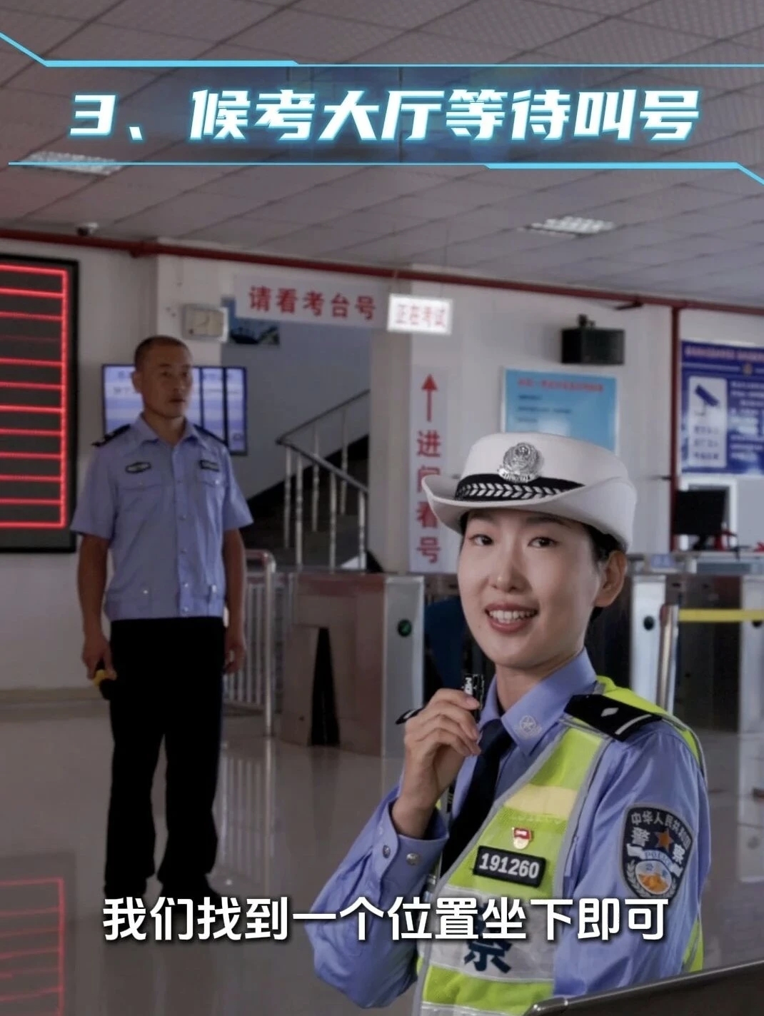 进入候考大厅后找位置坐下,等待大屏幕叫名,认真听工作人员讲解考试要求和注意事项。叫到名字后,拿身份证刷前方的闸机获取自己的考台编号。