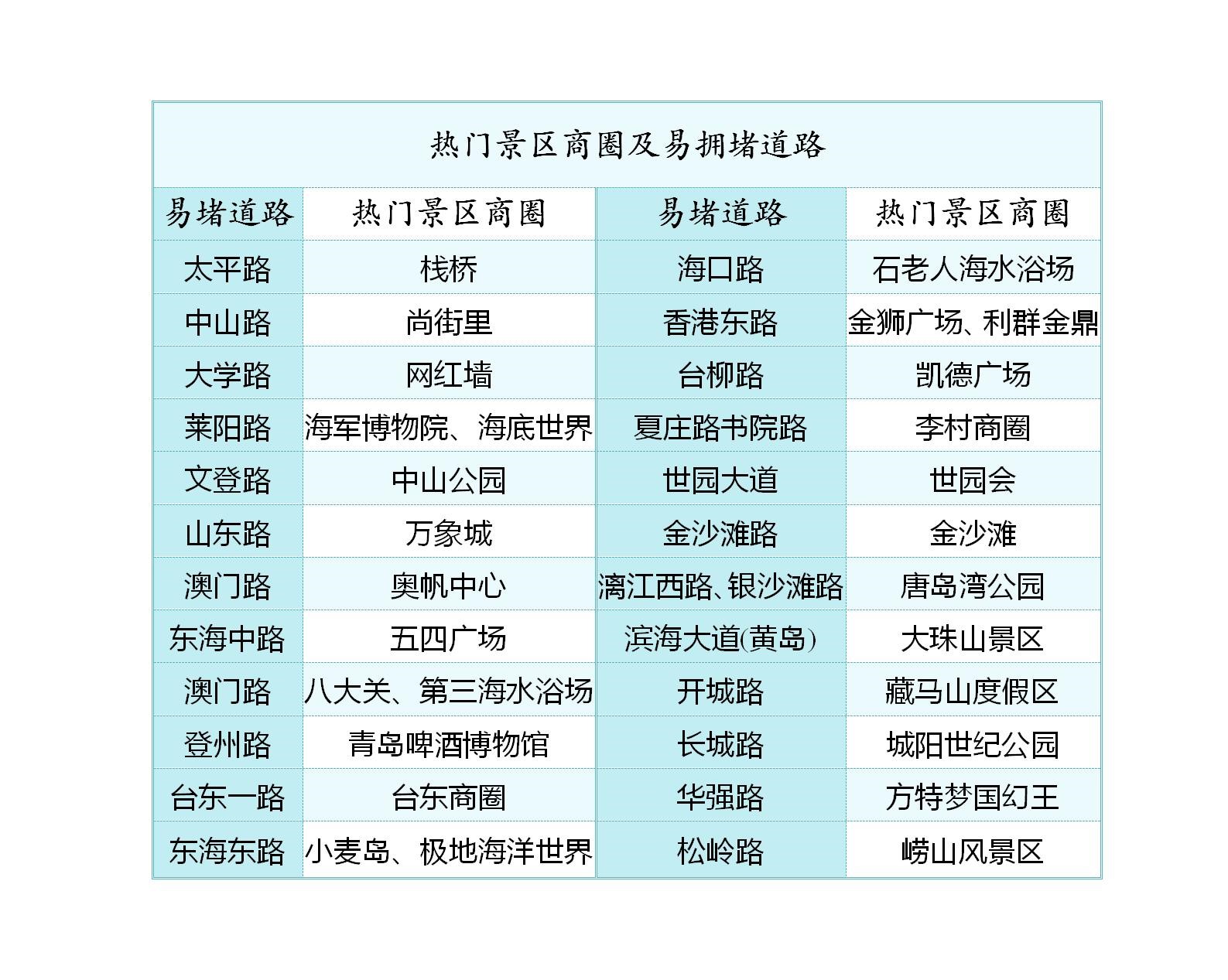 根据既往假期拥堵数据统计分析结果,预计胶州湾隧道、青银高速李村收费站、青兰高速王台南收费站、青岛西收费站、沈海高速黄岛段、铁山收费站、2号疏港高速隐珠收费站、204国道等区域易发生拥堵。胶州湾隧道、胶州湾大桥及环湾路、重庆路、黑龙江路、滨海大道等进出城主干道也将呈现车流量高位状态,缓行现象突出。