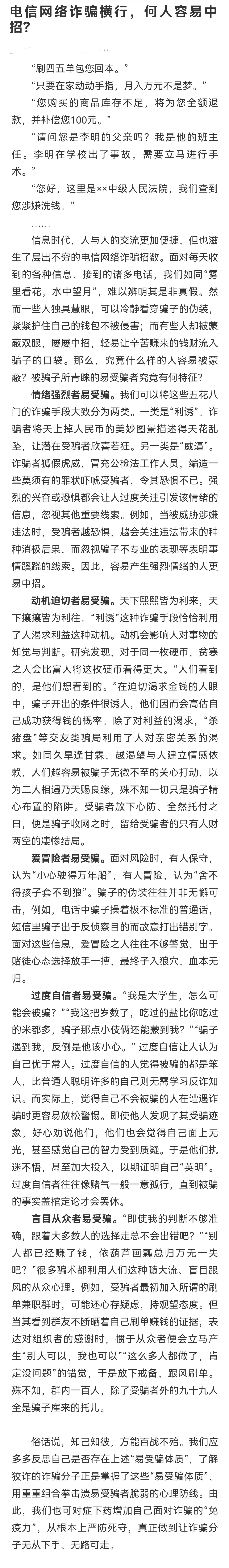【反诈预警】电信网络诈骗横行,何人容易中招?