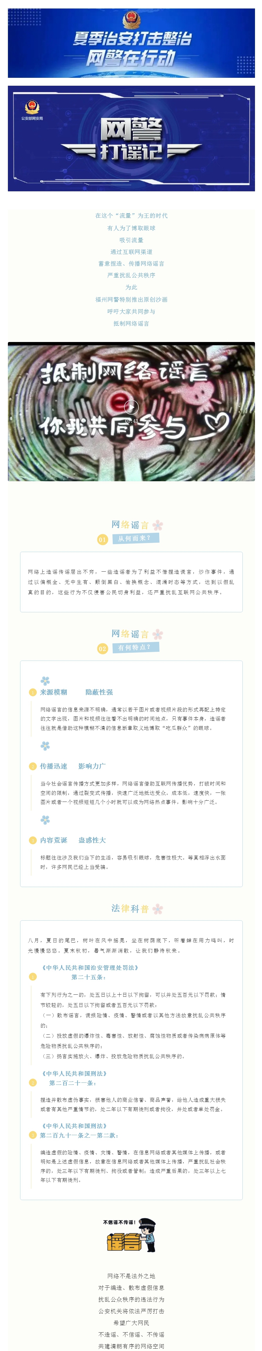 公安机关查处网络谣言丨网警沙画_ 抵制网络谣言,你我共同参与!_青岛政务网