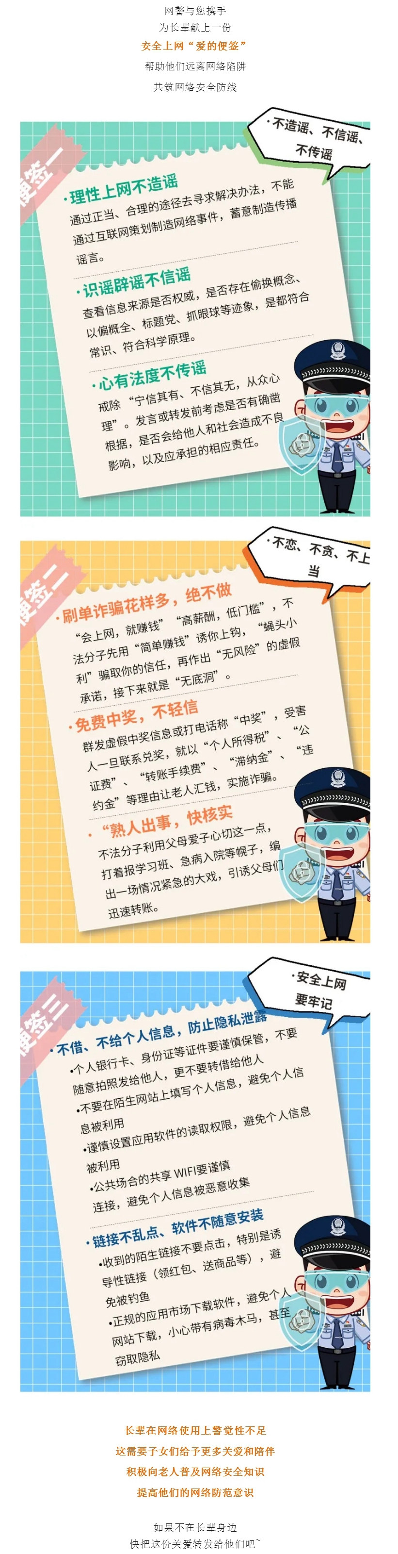 如果长辈不在身边,请把网警制作的安全上网“爱的便签”转给他们吧__青岛政务网