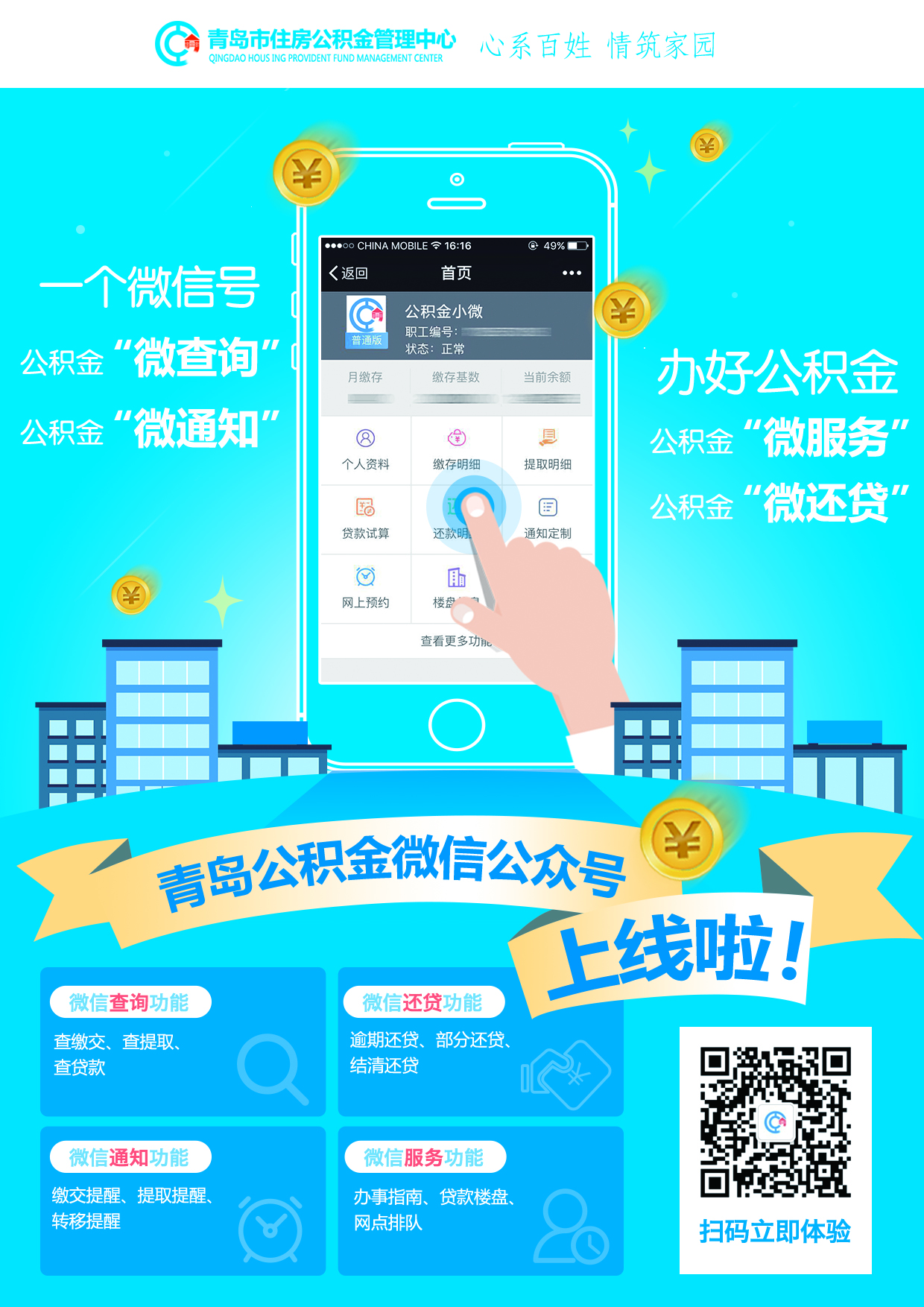(二)公开平台建设情况。一是充分利用住房公积金服务大厅服务平台,在服务大厅设立了电子显示屏、公示栏和查询机,将住房公积金各类业务的办理依据、办理时限、办理流程、办理结果,对外窗口的服务承诺、工作规范、行为准则和服务标准进行公开,方便了广大办事职工和群众了解和查阅;二是充分利用报刊、电视等媒体发布信息,加强与各类媒体沟通,宣传公积金政策法规、民生关注的热点信息及我市公积金发展动态;三是利用门户网站公开信息。完善门户网站的功能栏,丰富网站信息内容,将住房公积金的业务办理程序、政策法规、政务信息在中心网站公布。方便群众查询住房公积金法规、动态、信息等事项。畅通沟通渠道,建立了单位信箱、网上留言版等栏目,将我中心的重要政策调整、业务办理程序等在网上公示。四是在12329住房公积金服务热线原有服务基础上进一步完善语音流程、丰富查询内容、扩展服务功能,全年人工实际接听27万余次,给缴存单位和职工带来更加全面、专业、高效的服务体验。五是创新开通了集政策宣传、信息查询、业务办理、预约排队等20多项功能于一体的“青岛公积金”微信公众号,自10月中旬上线至年底,共有5万多人关注并体验了公积金掌上微服务,全年回应微信公众关切问题2210件。