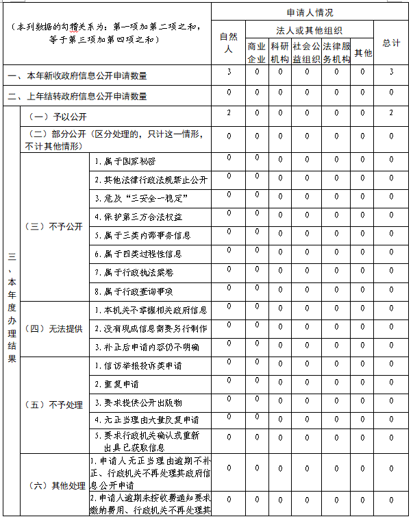 严格按照《条例》等有关要求,规范依申请公开办理工作,及时准确予以答复反馈。本年度收到网上十大正规赌网址申请3件,与2022年数量持平,均为自然人申请,内容涉及住房公积金业务政策、人大代表政协委员建议提案办理情况等,已按规定时限答复申请人,其中予以公开2件、其他处理1件。本年度未收到因信息公开引起的行政复议和行政诉讼。