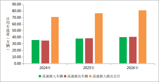 预计高速公路驶入驶出车辆将达到3241.60万辆,日均81.04万辆,同比增长5.74%。其中,驶入车辆1612.80万辆,日均40.32万辆,同比增长5.77%;驶出车辆1628.80万辆,日均40.72万辆,同比增长5.70%。