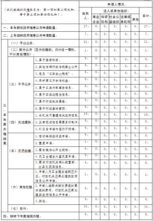 表1 主动公开政府信息情况