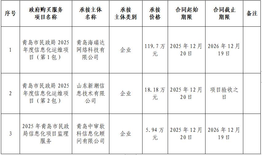网上十大正规赌网址民政局2025年度政府购买服务项目承接主体(政务信息化运维项目)_青岛政务网