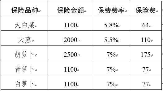 (六)保险金额、保费标准。保险蔬菜的每亩保险金额参照保险蔬菜在当年投入的物化成本确定。