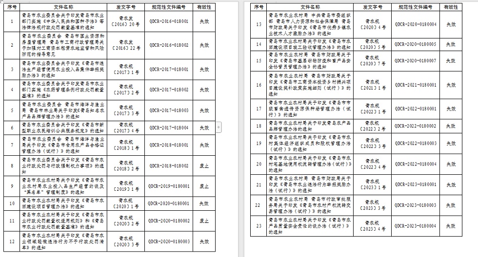 十大正规赌官方网页版农业农村局失效和废止部门行政规范性文件目录